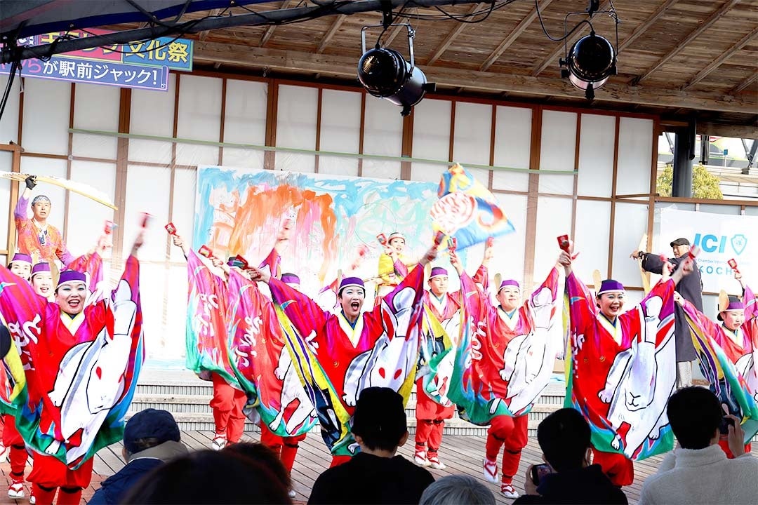 また、ステージでは、デハラユキノリさんによる来場者と創るペイントアートや、地元高知の「とらっくよさこい」や「旭食品」チームによる迫力あるよさこい演舞、さらに和歌山県から参加した「絆葵〜つなぎ〜」の演舞も披露され、会場は熱気に包まれました。