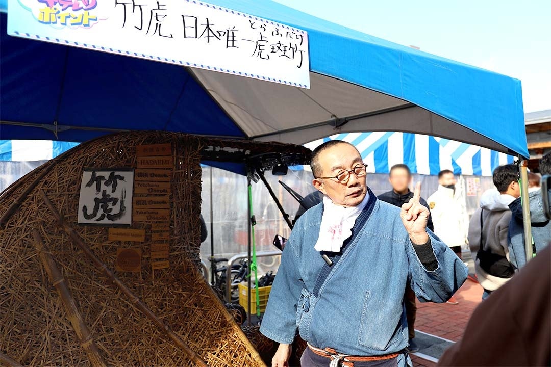 当日は、人気お笑いコンビ「FUJIWARA」や、アイドルグループ「僕が見たかった青空」の西森杏弥さんなど豪華ゲストも訪れ、竹虎のブースでは「竹トラッカー」を間近で見たり、竹籠バッグを手に取ってその美しさに感嘆する様子が撮影されました。竹虎四代目は、軽快なトークで竹の魅力を語り、笑いを生む場面もありました。
