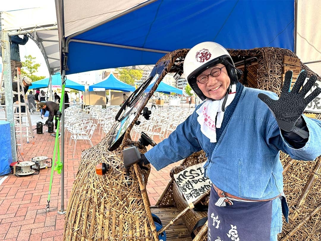 竹虎の展示ブースでは、自然の恵みを最大限に活用した竹製品の展示販売や、虎竹の持つ独特の美しさをアピールしました。特に「竹トラッカー」は、多くの家族連れや子どもたちに大人気で、実際に乗り込んで写真を撮る姿も見られ、エコロジーとデザインが融合した未来のモビリティとして注目を集めました。