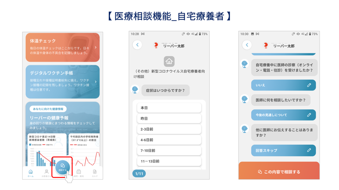 岡山県自宅療養者の療養生活不安軽減のために、医師と健康相談ができるアプリ「リーバー」を導入