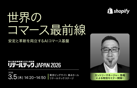 エージェントコマースの進展を受け、今後は具体的な実行が重要となります。Shopify Japanは、2026年3月3日(火)から6日(金)に東京ビッグサイトで開催される「リテールテックJAPAN 2026」に出展し、小売事業者に向けてAI時代の実践的な指針を提示します。