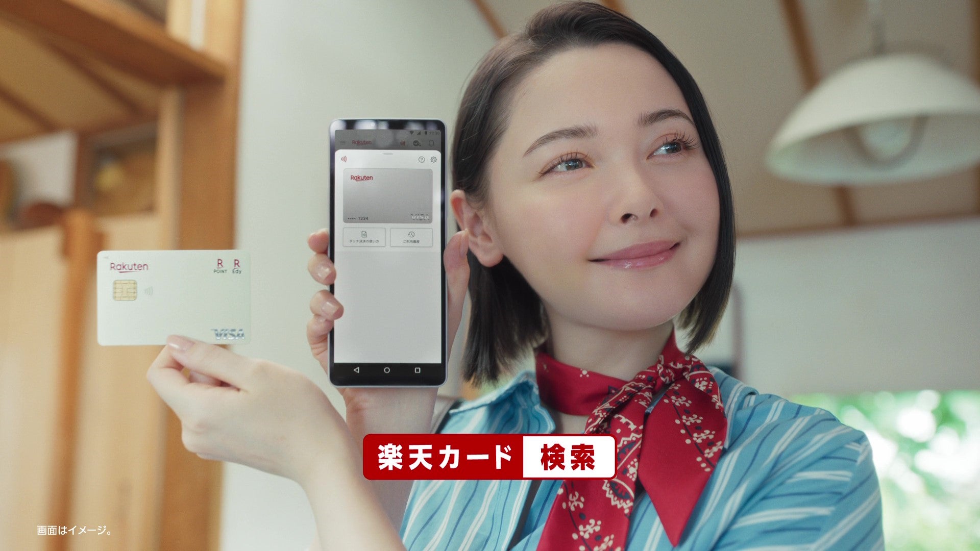 今回のCMは3パターン撮影し、お姉さんの立場から「楽天カード」のお得さや便利さを伝える、これまであまりなかった役を演じました。友達や後輩、お母さんといった身近な人に、日常の中で「楽天カード」の良さやお得さを伝えられたのが見どころだと思います。また、タッチ決済など特徴的な動きが日常の中で印象付けられるシーンもあるので、そこにも注目してほしいです。私自身も「楽天カード」と「楽天カードアプリ」を使っていて、撮影ではお得なところをさらに多くの方に伝えていけたらという気持ちで臨みました。