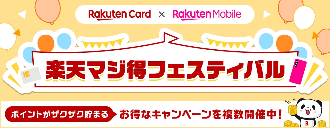 また、本日より楽天モバイル株式会社(以下「楽天モバイル」)と共同で、「楽天マジ得フェスティバル」を開催いたします。楽天カードの「楽天カード新規入会&利用で10,000ポイント」キャンペーン(注2)では、2025年6月20日(金)10:00から2025年6月30日(月)10:00までの期間で、楽天カード新規入会および利用で10,000ポイントが進呈されます。楽天モバイルでは、2025年6月20日(金)10:00から2025年7月7日(月)10:00までの期間に、楽天カード会員様かつ「楽天モバイル」を初めてお申し込み・開通されたお客様に、20,000ポイントを進呈する「【楽天カード会員様対象】楽天モバイル初めてお申し込みで20,000ポイントプレゼント」キャンペーン(注3)(注4)を開催します。楽天カードと楽天モバイル両社のキャンペーンに参加すると、最大で30,000円相当の楽天ポイントが進呈されるキャンペーンです。