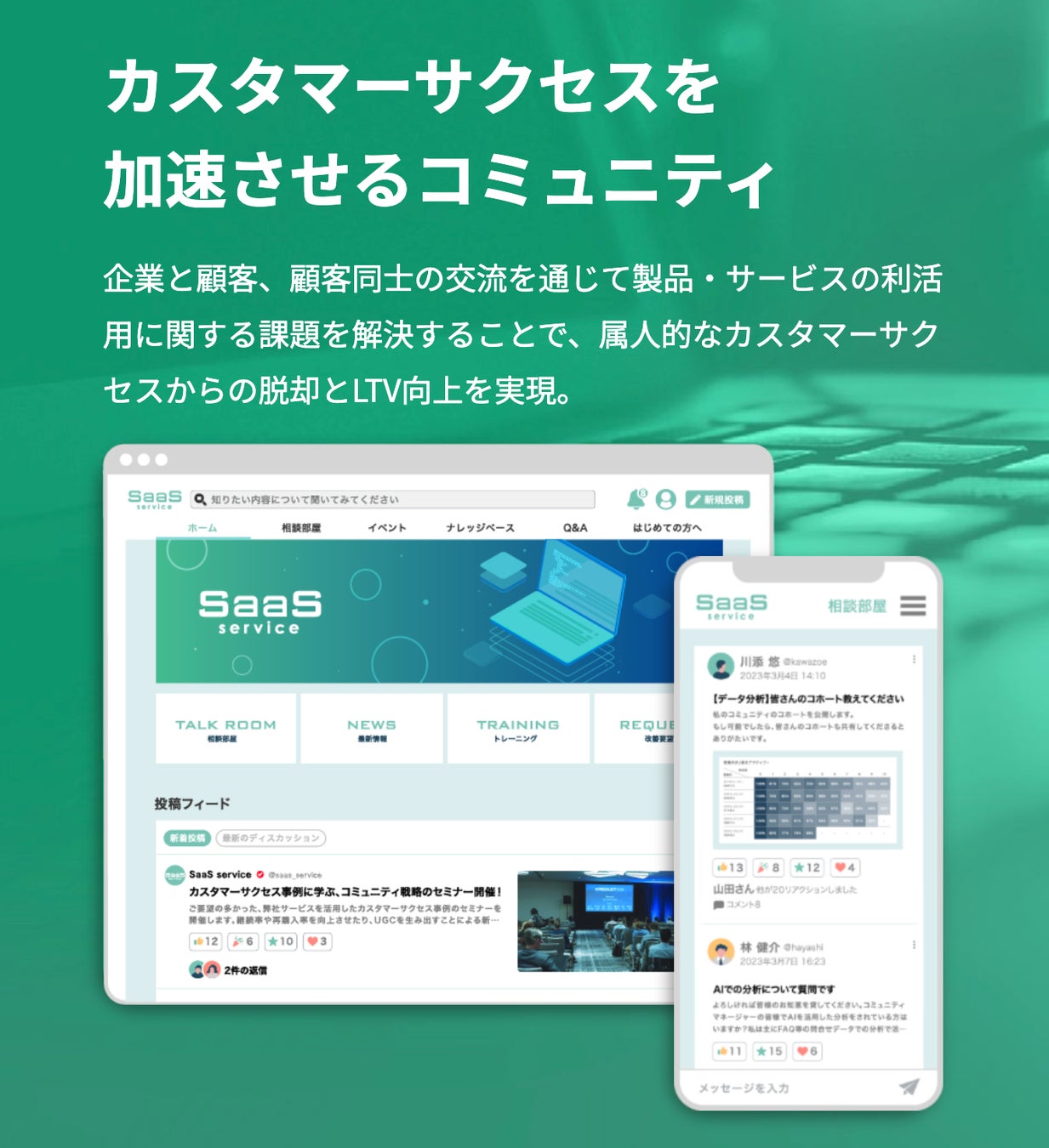 事業内容:コミュニティサクセスプラットフォーム「commmune」、効率的なカスタマーサクセスを実現するアクション基盤「SuccessHub」の運営