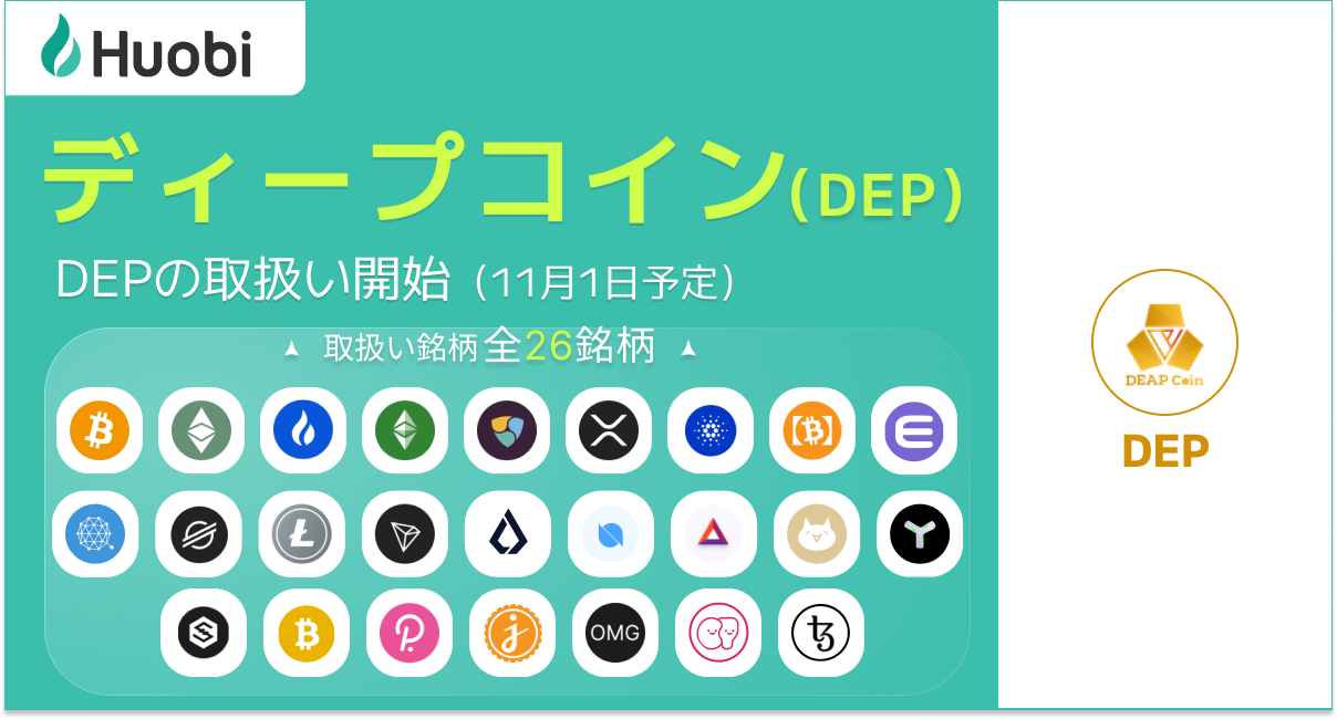 - ディープコイン(DEP)※次のURLに上場予定 https://www.huobi.co.jp/ja-jp/exchange/dep_jpy/