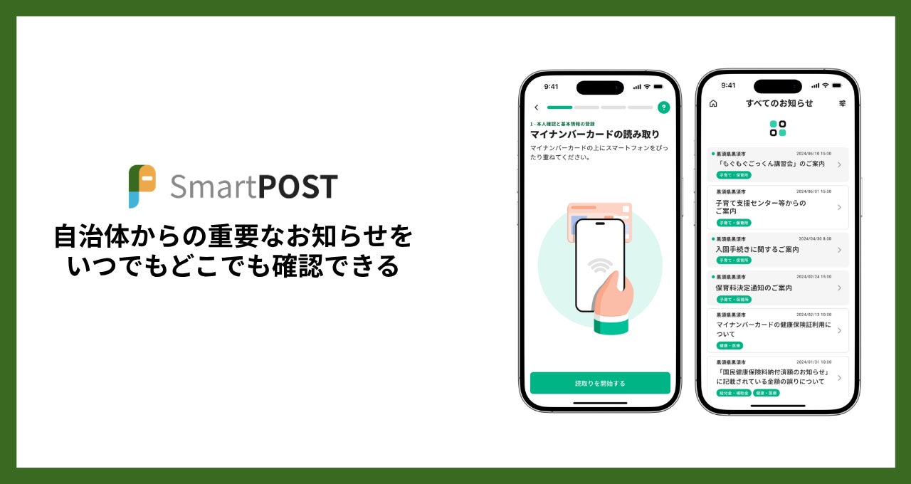 SmartPOSTは、マイナンバーカードを活用し、自治体からの通知を住民本人のスマートフォンに届けるデジタル郵便サービスです。