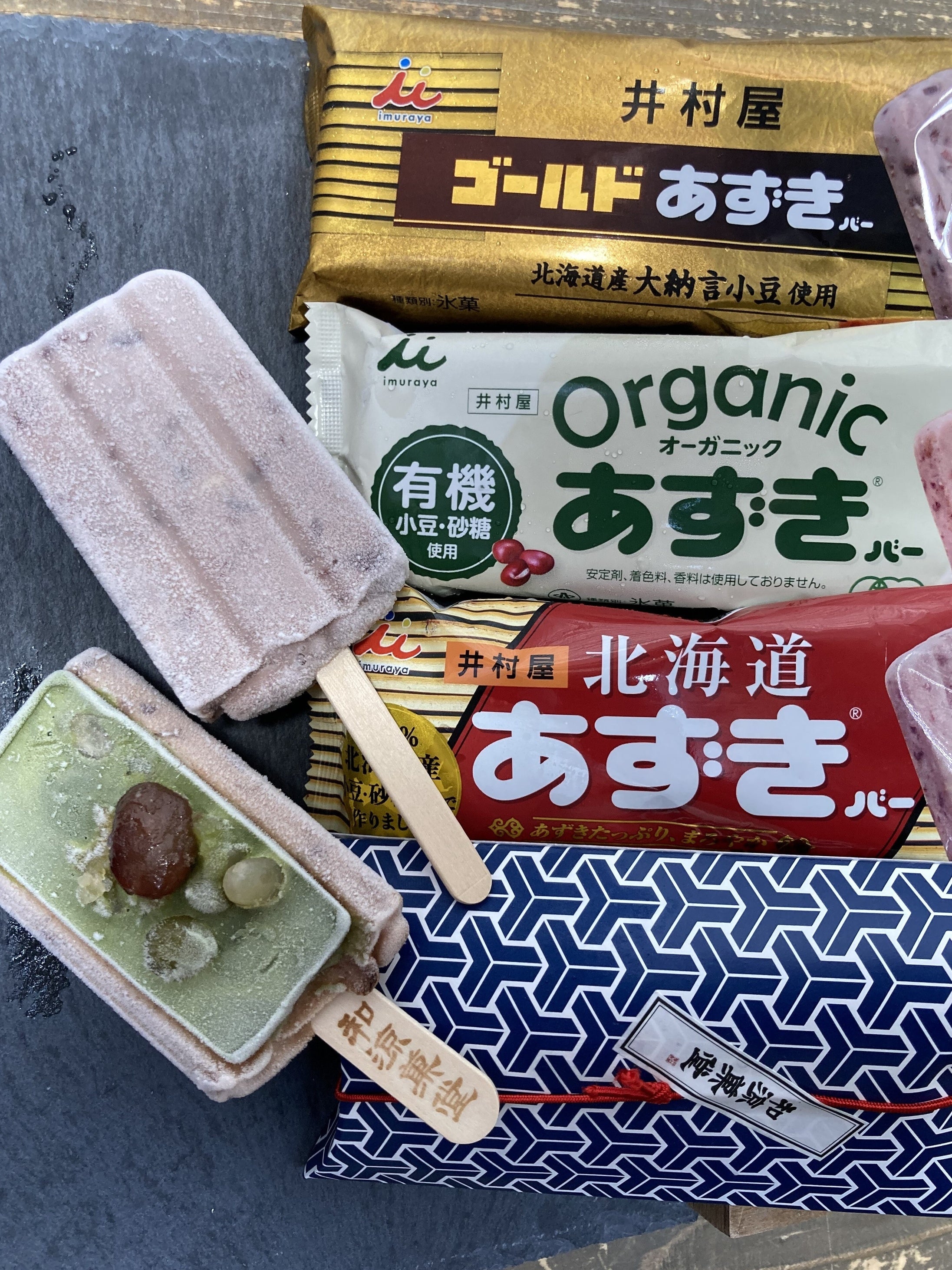 ゴールドあずきバー、オーガニックあずきバー、北海道あずきバー、涼菓バー豆と抹茶 各1本入り