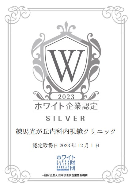 練馬光が丘内科内視鏡クリニックは2023年12月1日に「ホワイト企業認定 シルバーランク」を取得されました!