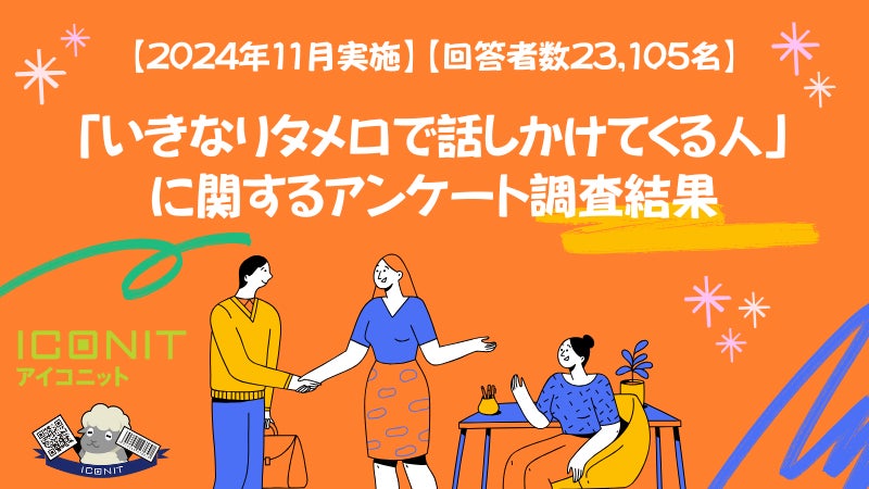 株式会社メディアシークが提供する累計3,600万DL超スマートフォンアプリ「QR/バーコードリーダー・アイコニット」内で、アプリユーザーを対象に毎日実施しているアンケート「アイコニット・リサーチ」において、「いきなりタメ口で話しかけてくる人」に関するアンケートを23,105名に対して2024年11月10日に実施いたしました。