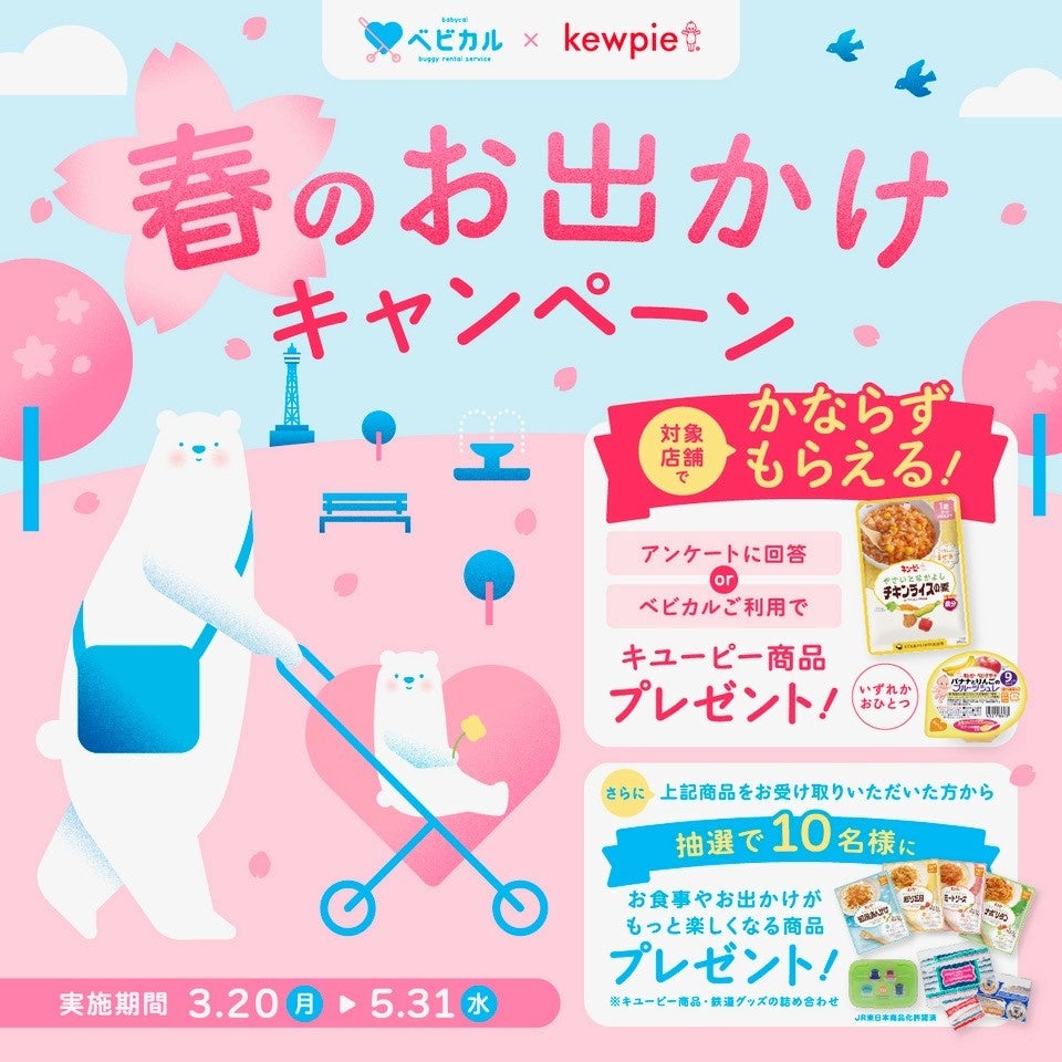 ベビーカーレンタルサービス「ベビカル」×「キユーピー」 「春のお出かけキャンペーン」を開催!!~3月20日から5月31日 おいしくたのしくお出かけを!~