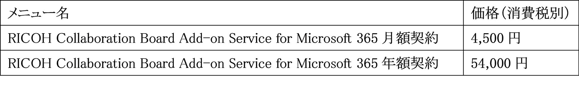 「RICOH Collaboration Board Add-on Service for Microsoft 365」利用プラン