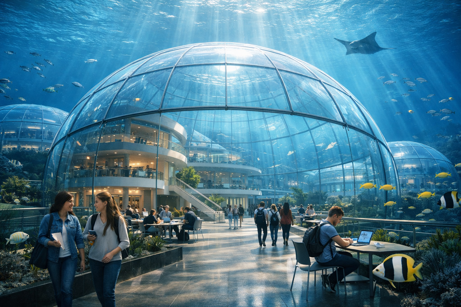 海底都市留学では、年間を通して安定した水温と落ち着いた環境のもと、集中して学習に取り組むことができます。透明度の高い海中空間に広がるキャンパスでは、実践的な英語コミュニケーションに加え、海洋文化や生態系に関する知識も身につけることが可能です。