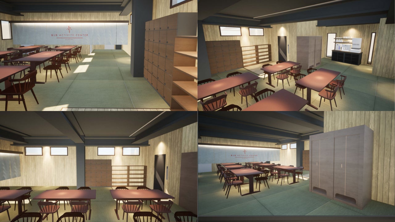 「BUB ACTIVITY CENTER Asakusa」の施設デザインは、日本の伝統美とモダンデザインを融合させた空間です。床には一面に畳が敷き詰められ、訪日外国人旅行者は靴を脱いで畳の感触や香りを五感で体験できます。また、壁は全面檜(ひのき)の板を使用し、木の持つ温かみや香りを感じながら、落ち着いた「和」の雰囲気を堪能することができます。