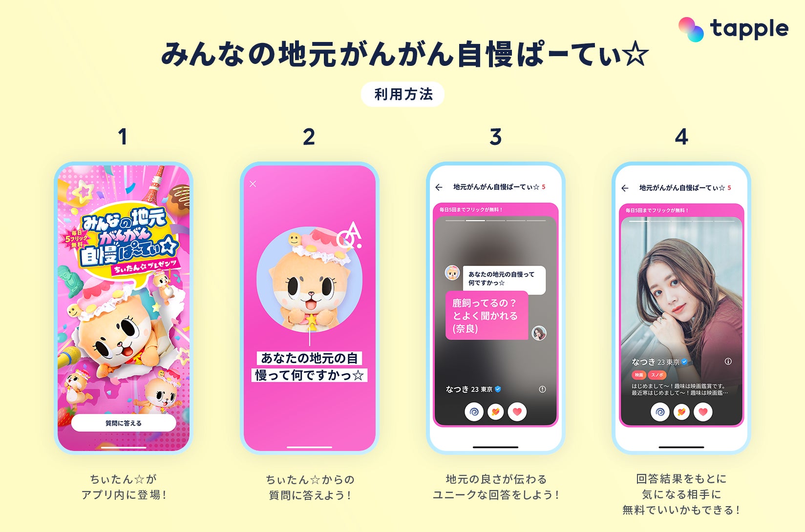 マッチングアプリ「タップル」、ちぃたん☆とのコラボ企画「みんなの地元がんがん自慢ぱーてぃ☆」を期間限定で実施