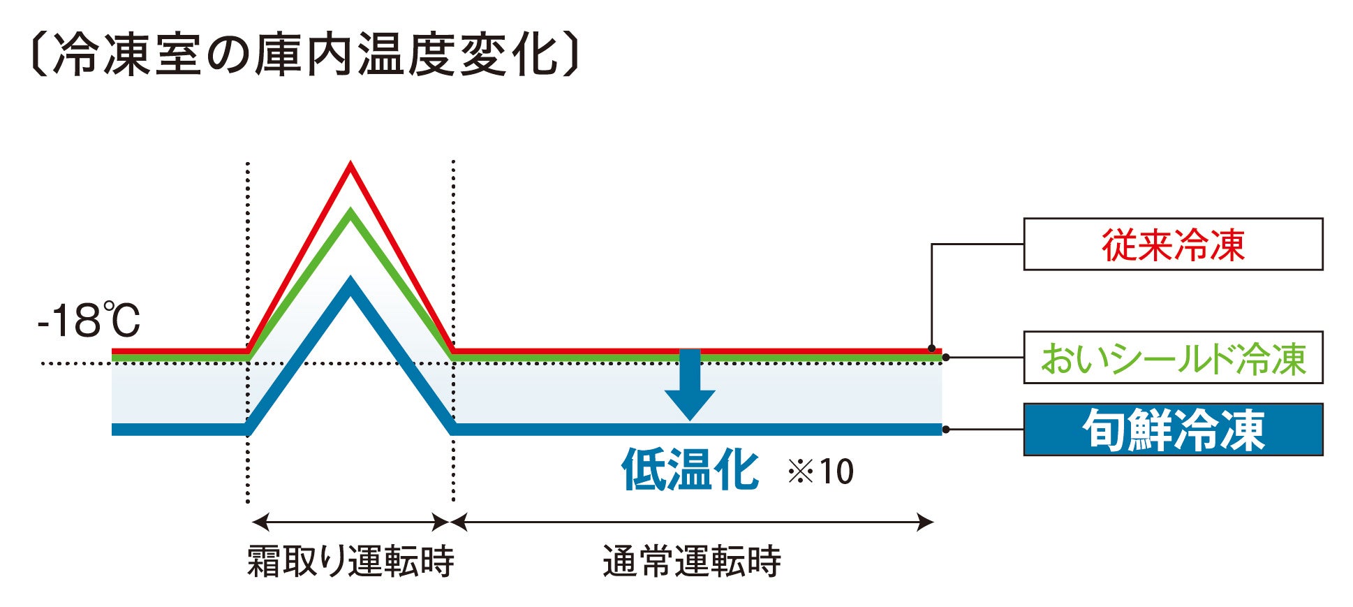 ※10:低温とは、冷凍強設定と同じ温度帯です。