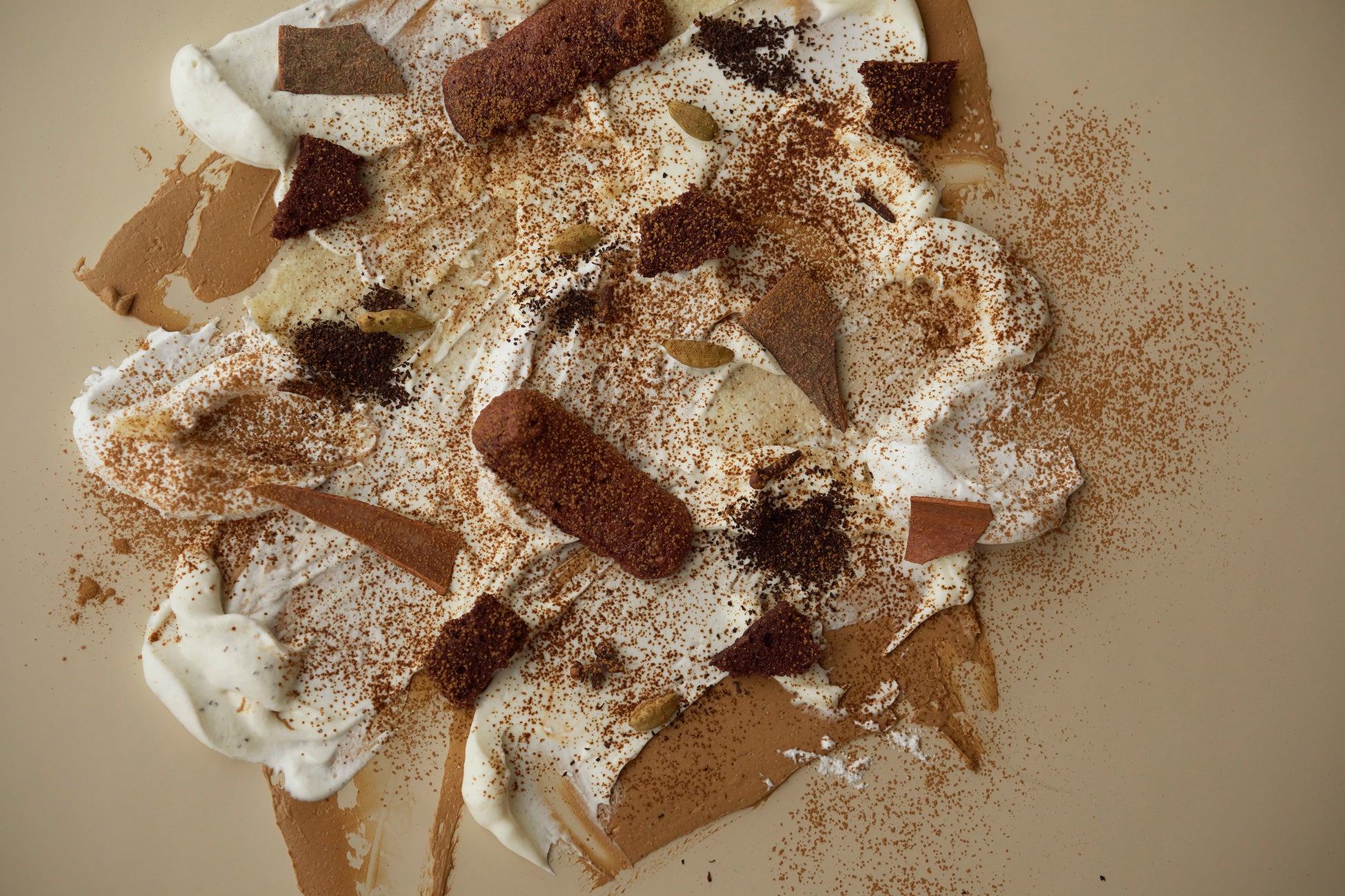 ムースのように淡い口溶けのティラミスに、チャイのスパイシーで香り豊かな味わいを表現したフレーバー。冷たい生クリームにウバ茶を加えて火にかけ、香りを丁寧に抽出。シナモン、カルダモン、クローブは、焦がしバターや生クリームとともに加熱することでスパイシーな香りをより一層引き出しました。生地、クリーム、生地に染み込ませるシロップそれぞれにスパイスを使い、シナモンの甘さ、カルダモンの爽やかさ、クローブの香ばしさをバランスよく組み合わせることで、チャイの味わいを引き立たせています。ウバ茶の旨味とスパイスの豊かな香りを、ティラミスの淡い口溶けとともにご堪能ください。