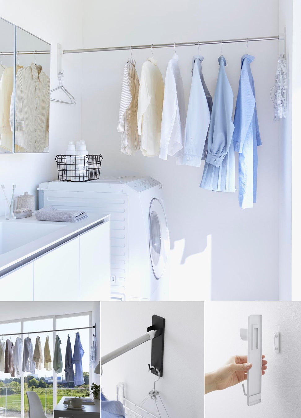 洗面所やランドリールームの壁面に設置すれば、洗濯機から取り出してすぐに干せます。