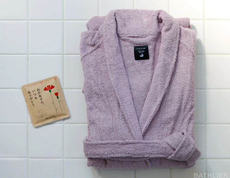 お母さんへのプレゼントにぴったりな水素入浴剤とバスローブセットにして、感謝の気持ちと一緒にお届けします。お風呂あがりのリラックスタイムに欠かせないバスローブで、癒しを存分に体感してもらいましょう。