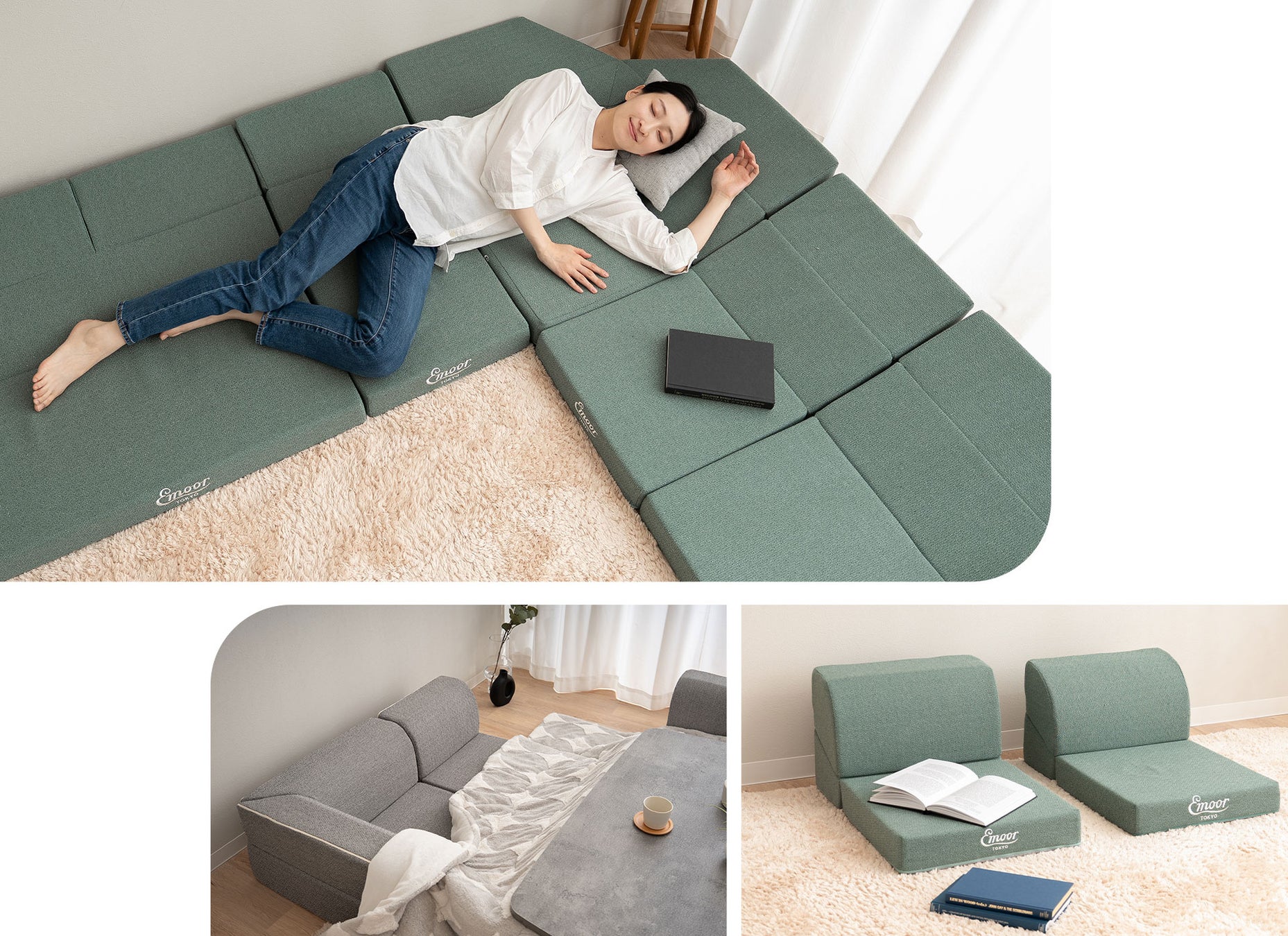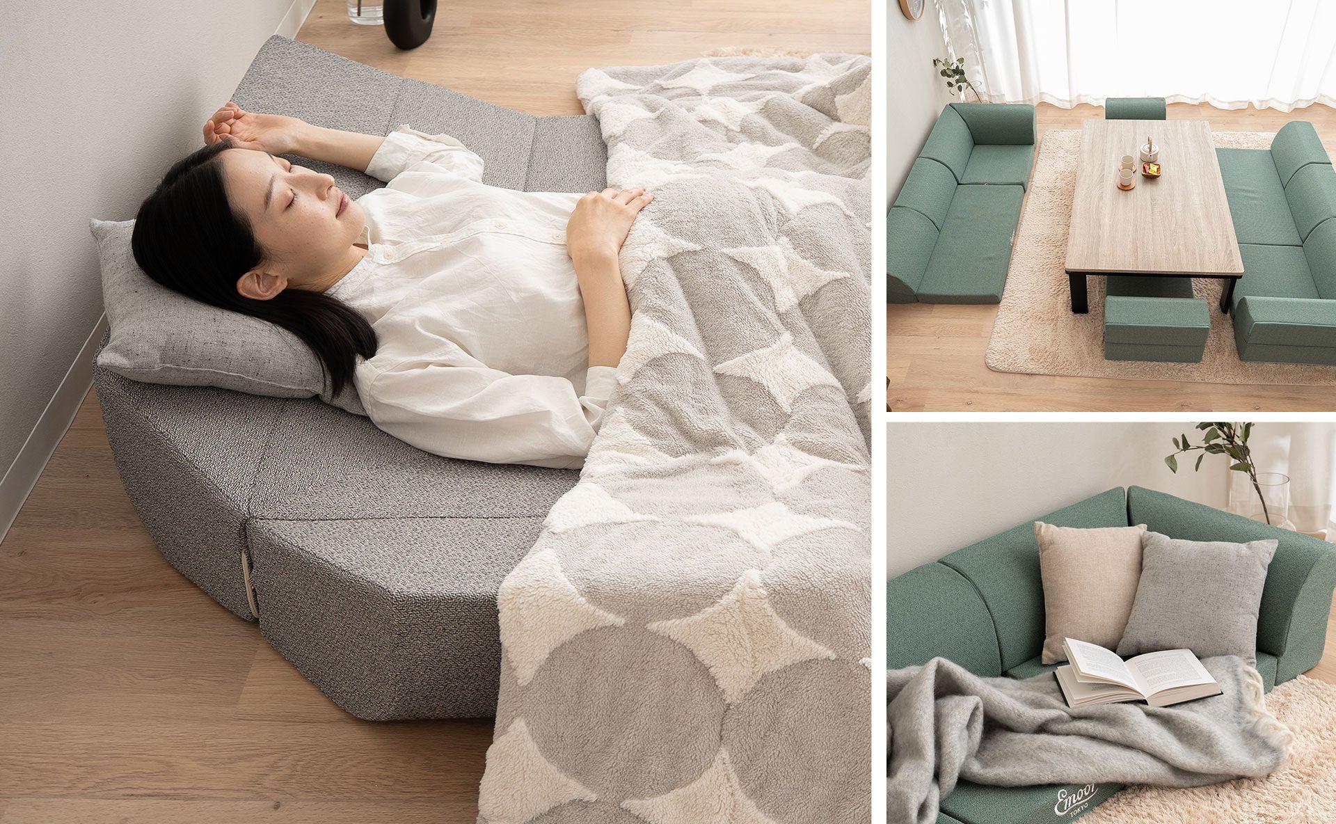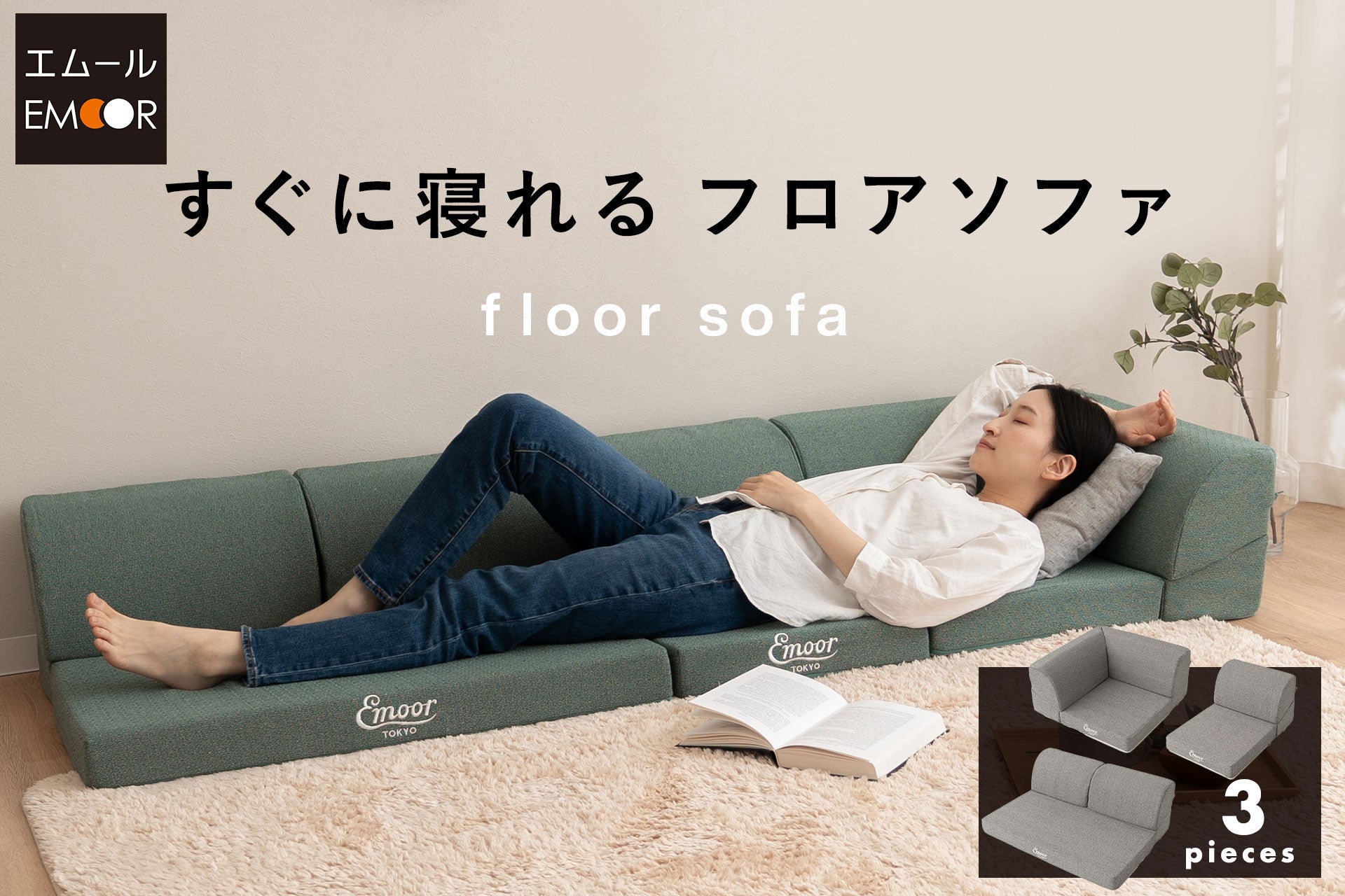 “寝る・座る・たたむ”に高い専門性を持つ健康家具ブランドEMOOR(エムール)から、高品質ウレタンを使用した3ピースを自由にレイアウトできる「すぐに寝れるフロアソファ」が新登場。