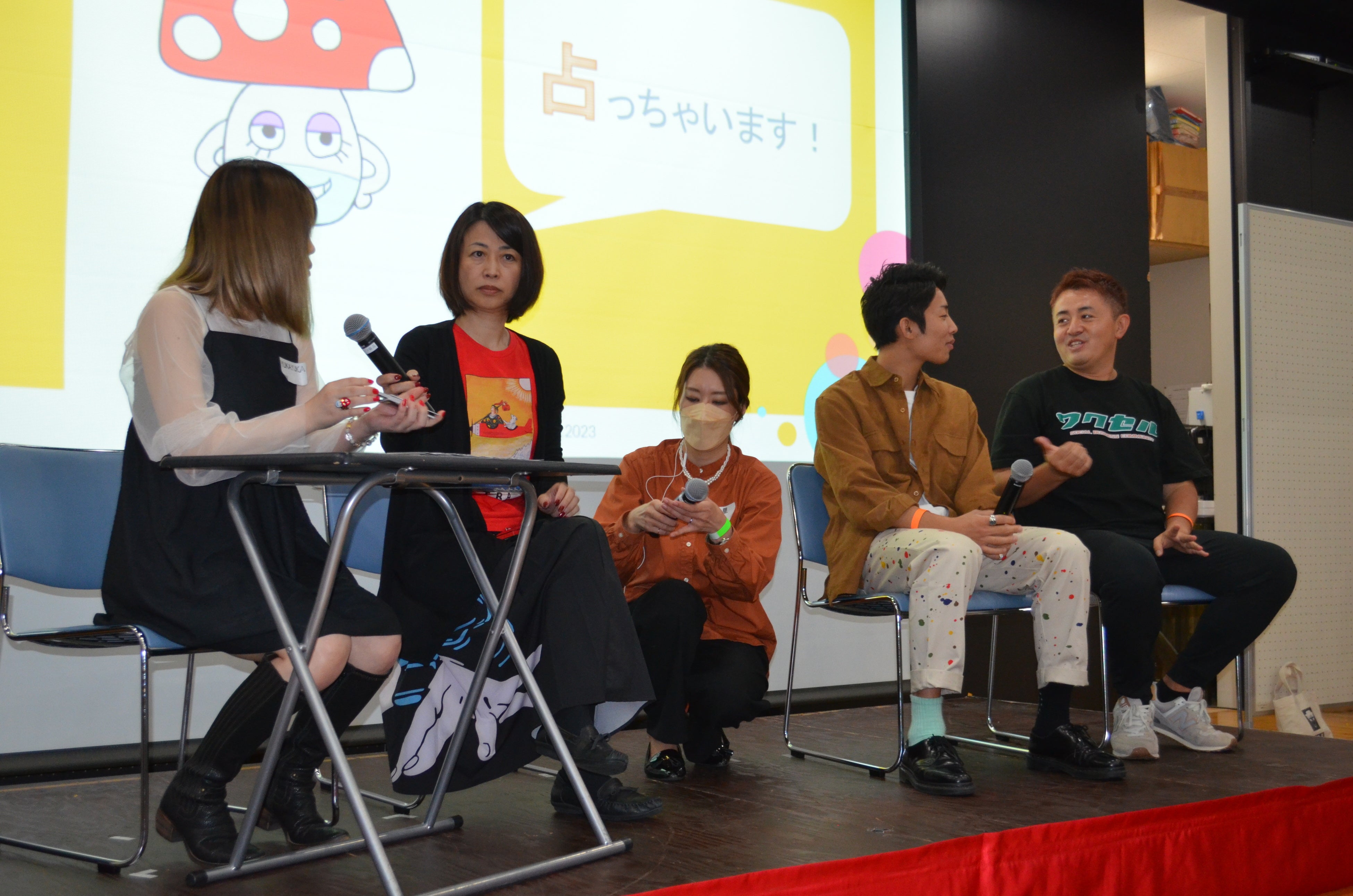全盲キャラクターデザイナーYUKAYUKA氏と、一般社団法人タロットリーダー協会 代表理事 みさきのゑ氏による、来場者参加型の占いコーナーを開催しました。