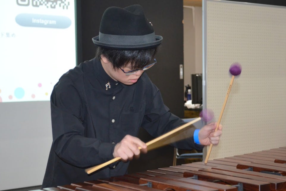 ダウン症マリンバ奏者の多田駿介氏に、イベント開催を祝した演奏をしていただきました。