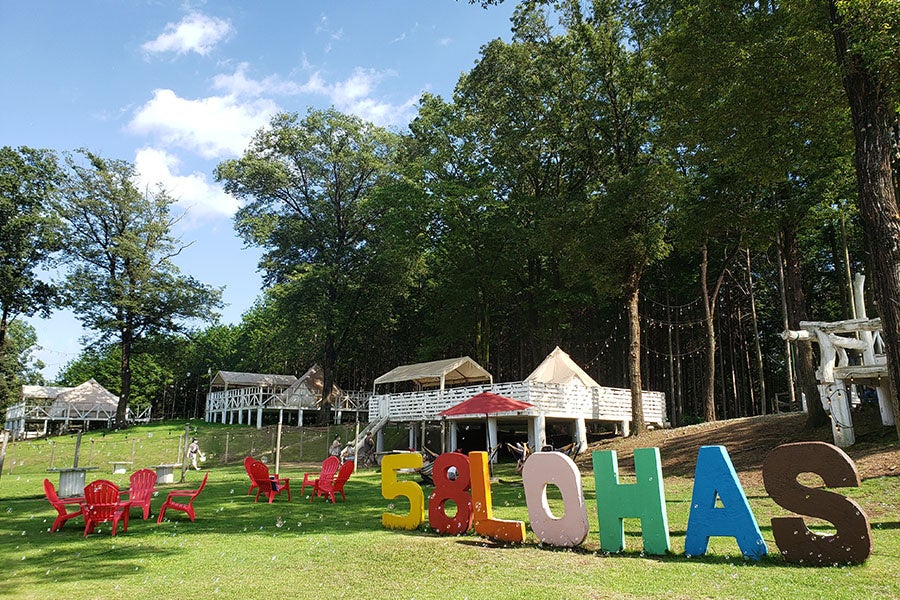 都心から車で約2時間。南那須・栃木県板矢市の元ゴルフ場という豊かな自然を活かした多種の体験コンテンツが可能な複合型施設「58ロハスクラブ」敷地内に配置された9棟限定・プライベート『栃木ファームグランピング Rustic CAMP -ラスティックキャンプ-』