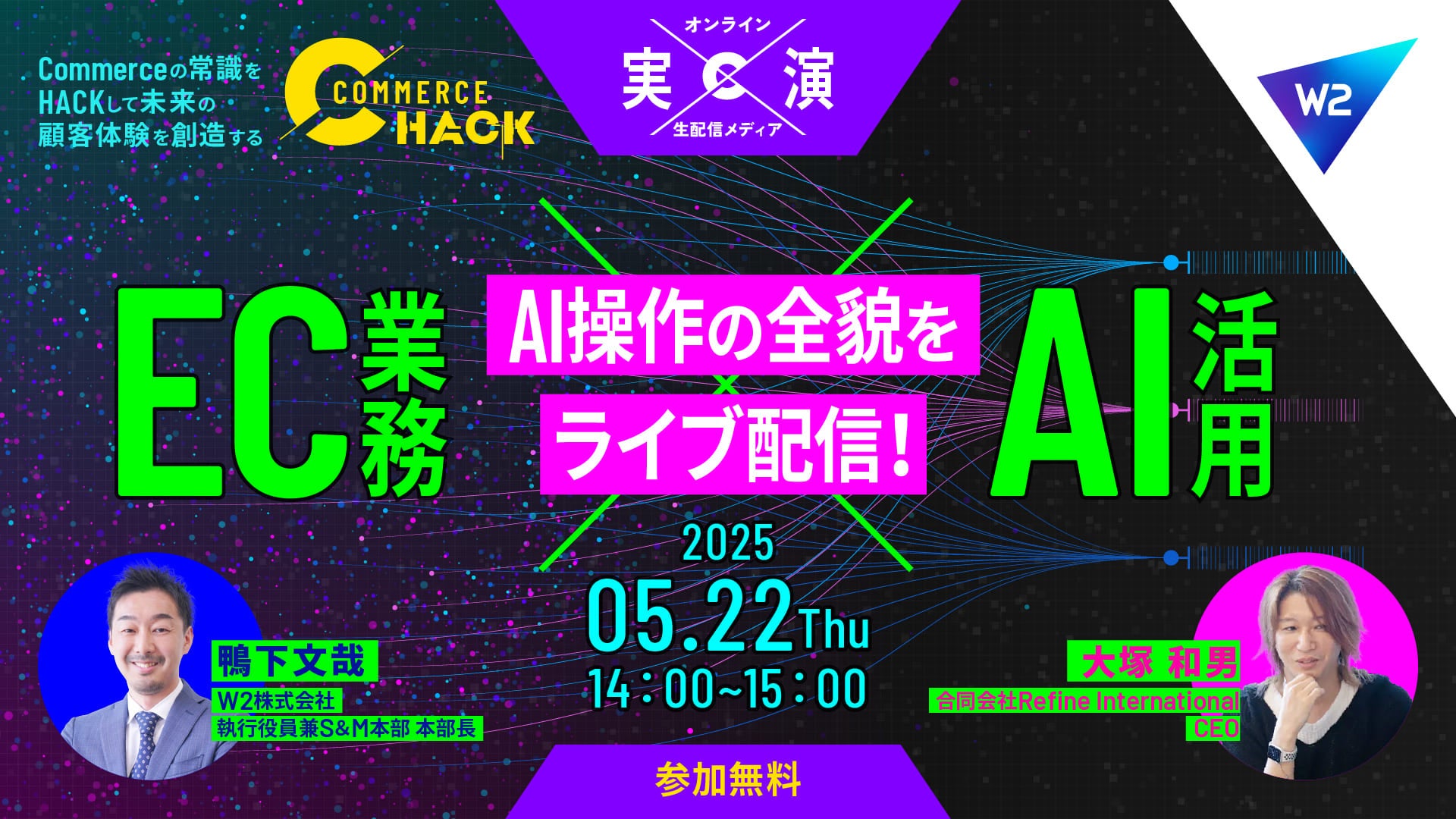 W2株式会社(本社:東京都中央区、代表取締役:山田大樹、以下W2)が運営する映像メディア 「Commerce Hack」 の累計視聴申込数が、2025年9月末時点で1,000名を突破したことをお知らせします。各回で“現場にそのまま持ち帰れる”実務ノウハウをライブ形式で提供し、EC・リテール企業様に向けて多様なコンテンツを毎月配信してきた取り組みが支持を集め、多くの視聴者から高い評価をいただいています。