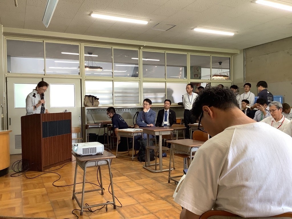 THE 610 BASE(旧中六人部小学校)の元教室を会場とし、公有財産の活用にかかるメリットやデメリット、事業実施にあたっての留意点などをご説明しました。本市の廃校を用いて実際に活用事業を展開されている、井上株式会社の井上社長と株式会社京繊の田中会長による講演や、株式会社ウエダ本社の岡村社長によるトークセッションを通じて、公有財産活用における施設の用途変更や消防設備に関する手続きの留意点など、ご自身の経験や実例を交えたお話をいただきました。