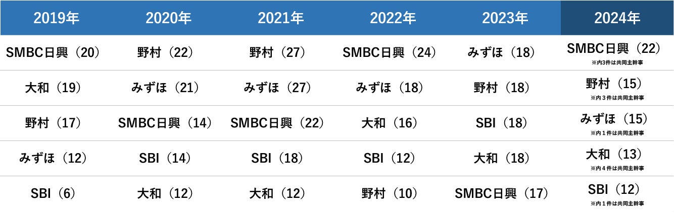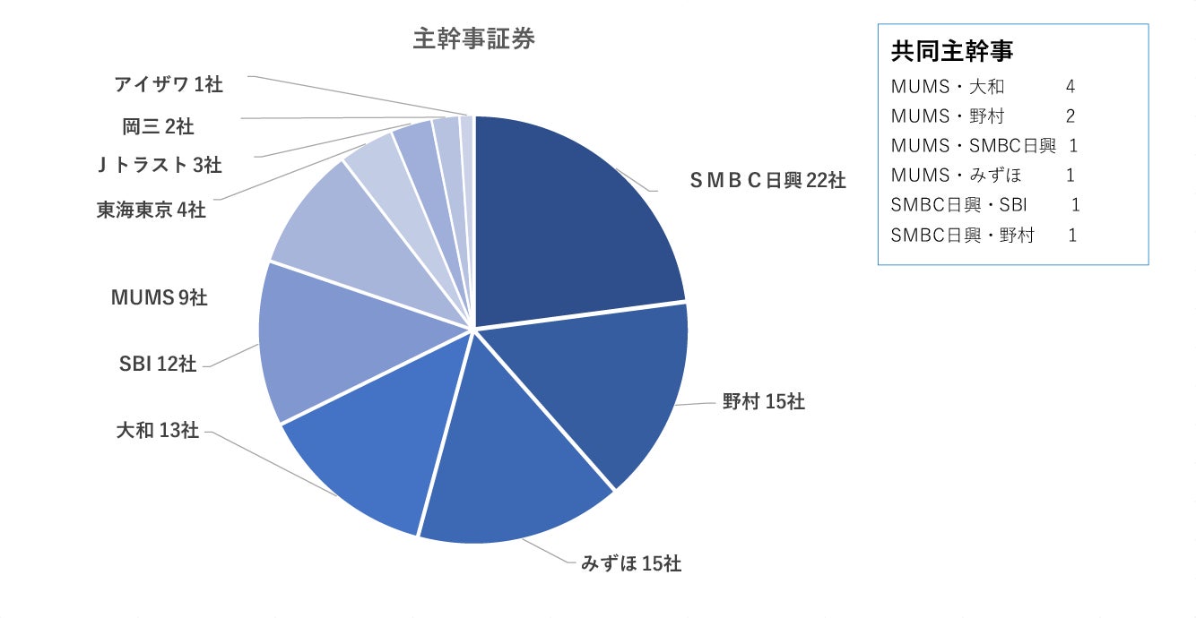 共同主幹事の案件が10件(前年8件)ありました。内8件は三菱UFJモルガン・スタンレー証券の案件です。