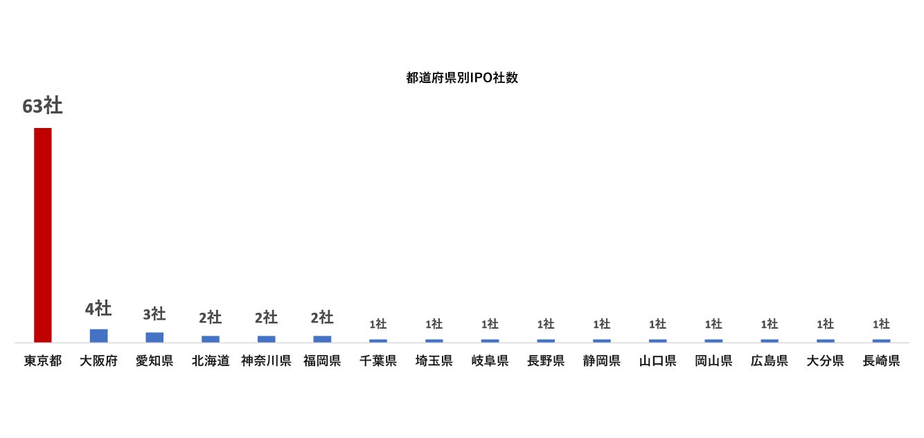 調査対象:期間内に国内の取引所(東京証券取引所、名古屋証券取引所、福岡証券取引所、札幌証券取引所)に新規上場した企業