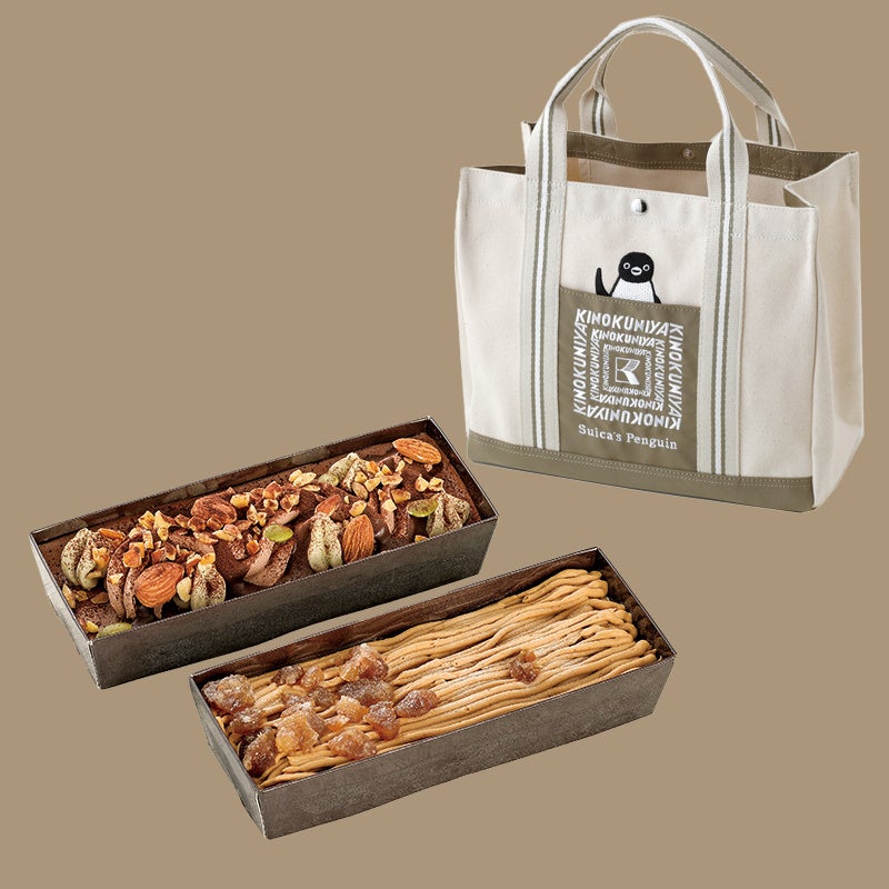 商品詳細:紀ノ国屋 大人のモンブランと木の実ショコラケーキセット(Suicaのペンギン ランチバッグ)【冷凍】