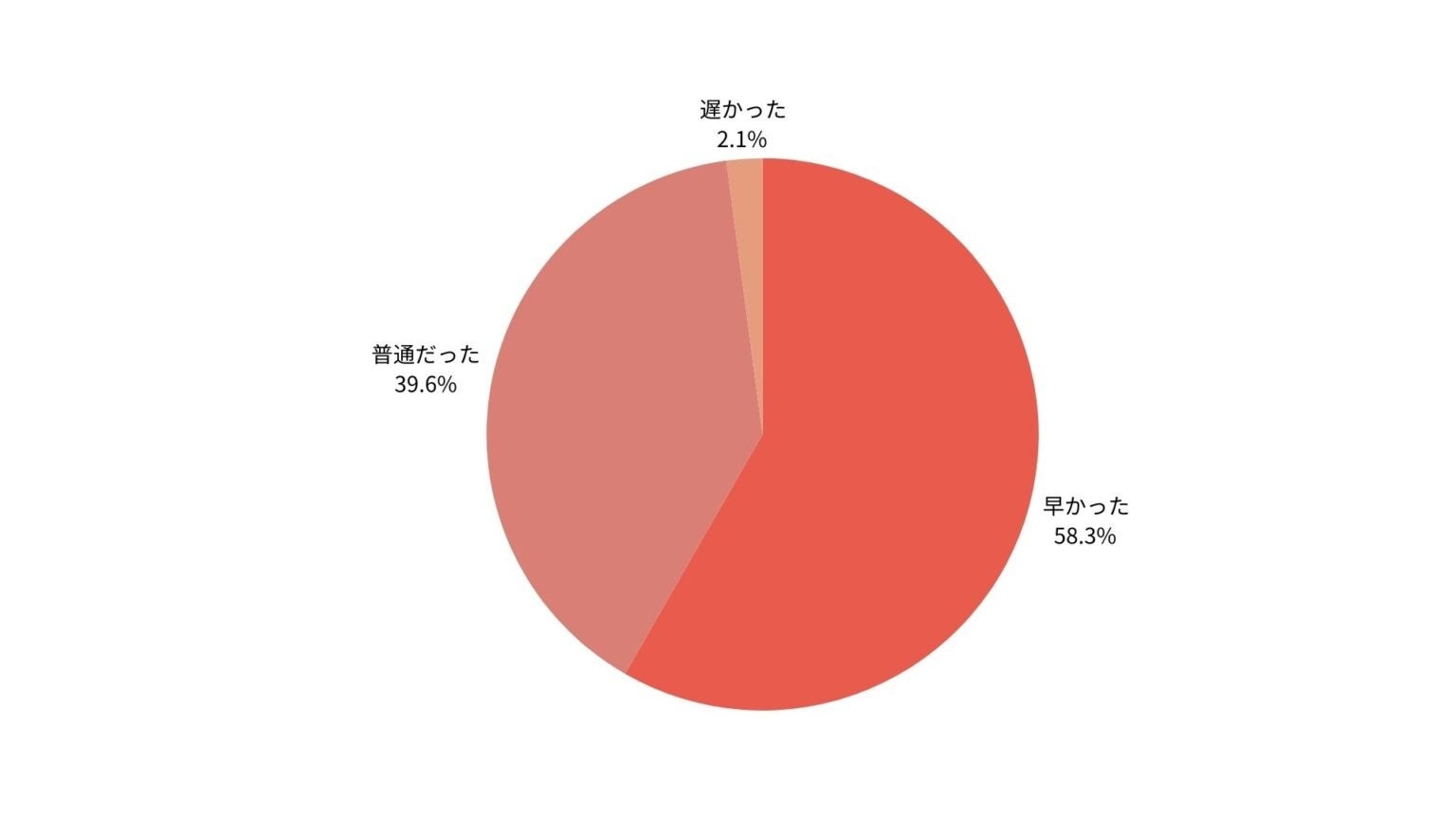 レイクの審査のスピードが「早かった」と回答した人が58.3%で最も多く、反対に「遅かった」と答えた人は2.1%に留まった。