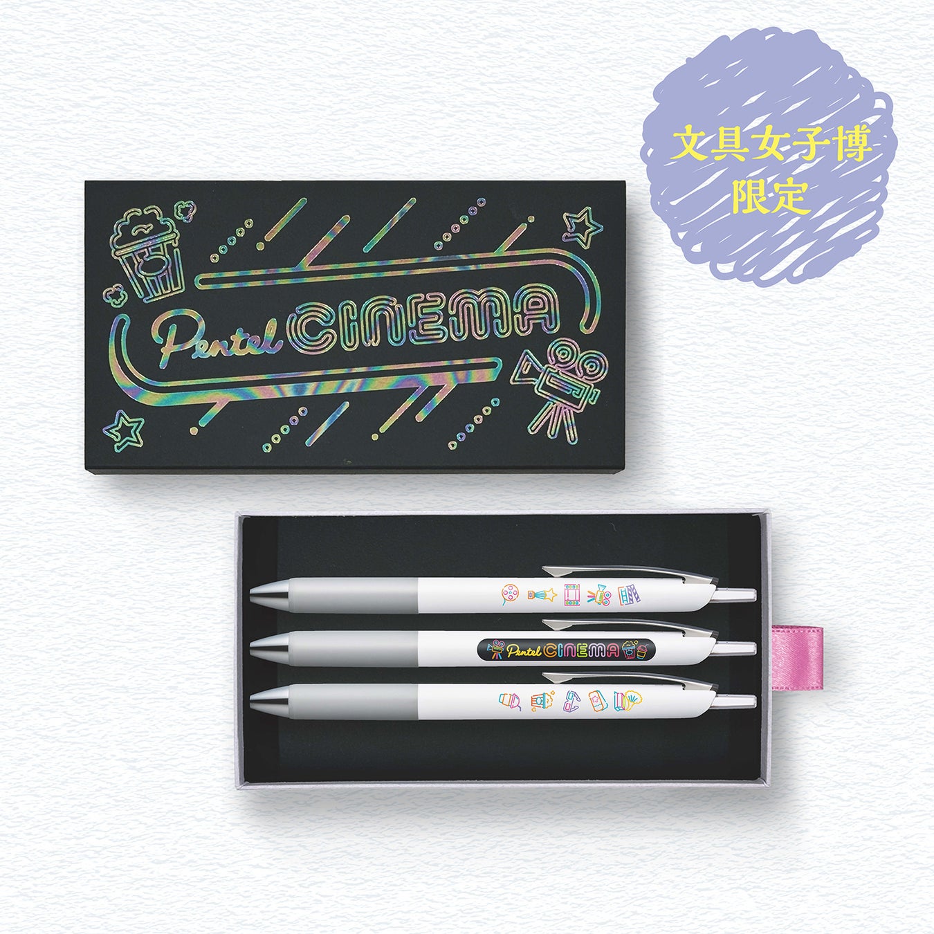 「ぺんてる Pentel Arts」は、“CINEMA”をテーマとしたネオンサインデザインの文具女子博限定 3 本セットを限定販売! “どきどき!ネオ文具シティ”に合わせたオリジナル柄です。