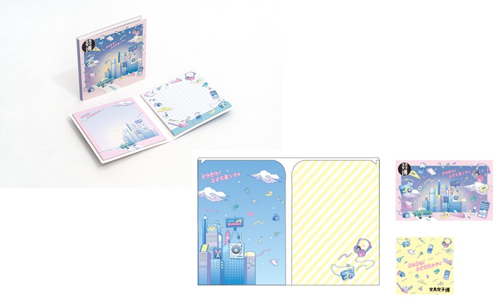 文具メーカーとコラボしたオリジナルグッズは、すべて文具女子博限定のアイテム♡今回の開催テーマ「どきどき!ネオ文具シティ」をイメージした商品を多数ご用意しました。横浜会場限定のオリジナルインクは必見です!