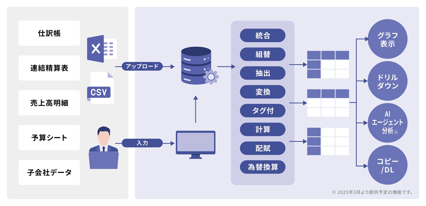 会計データプラットフォーム『Finovo』は、散在する財務データや非財務データの回収から加工・分析までノーコードで自動化・高度化できるクラウドサービスです。業績管理、予実管理、原価計算、連結管理会計、KPI管理、監査対応など様々な場面で使用する会計データを構造的かつ横断的に管理し、機械的な作業の自動化とデータ分析の高度化を通じて、企業のファイナンス・トランスフォーメーションを支援します。