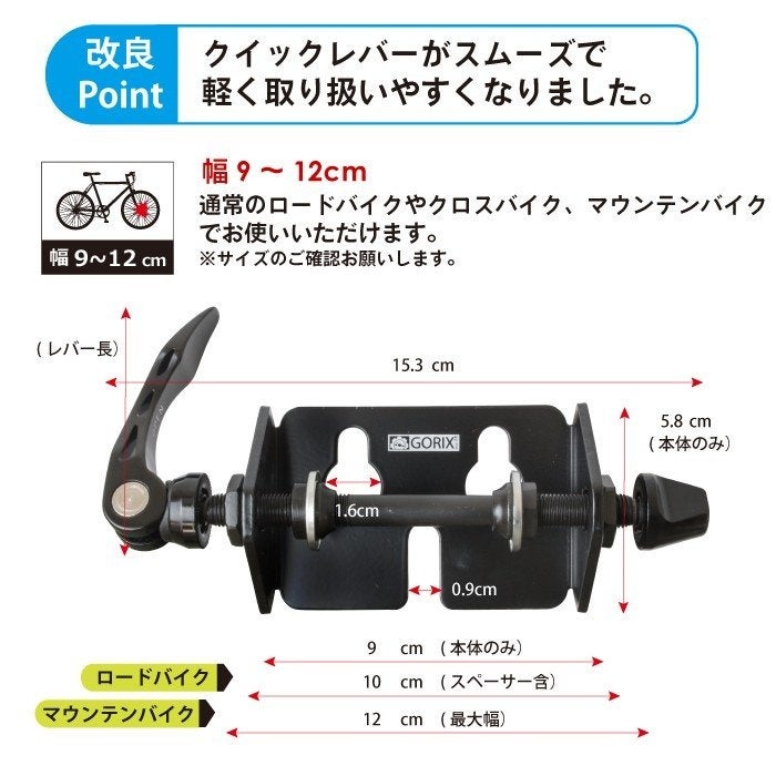 ロード用、MTB用両方どちらでも対応可能で、最大9~12cmまで対応しています。