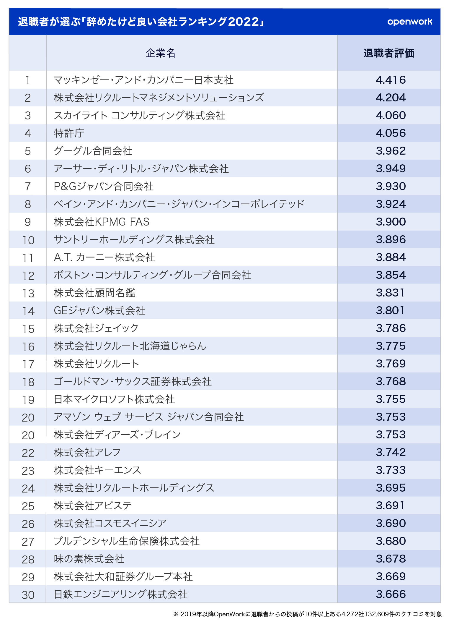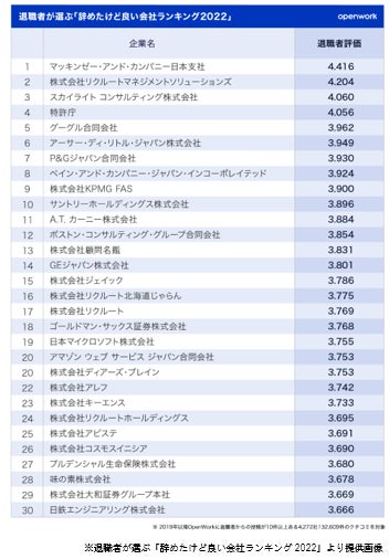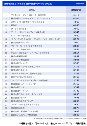「退職者が選ぶ『辞めたけど良い会社ランキング2022』」で15位にランクイン