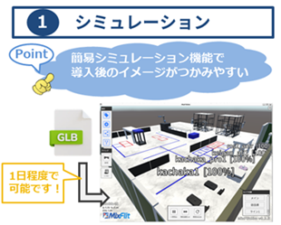 ・3Dシミュレーション機能により、導入前に業務イメージを可視化でき、安全性と効率性を向上