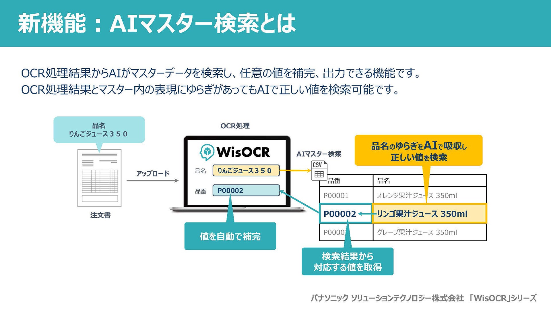 パナソニックのAI帳票OCR「WisOCR」シリーズに新機能「AIマスター検索」「修正履歴学習」が登場