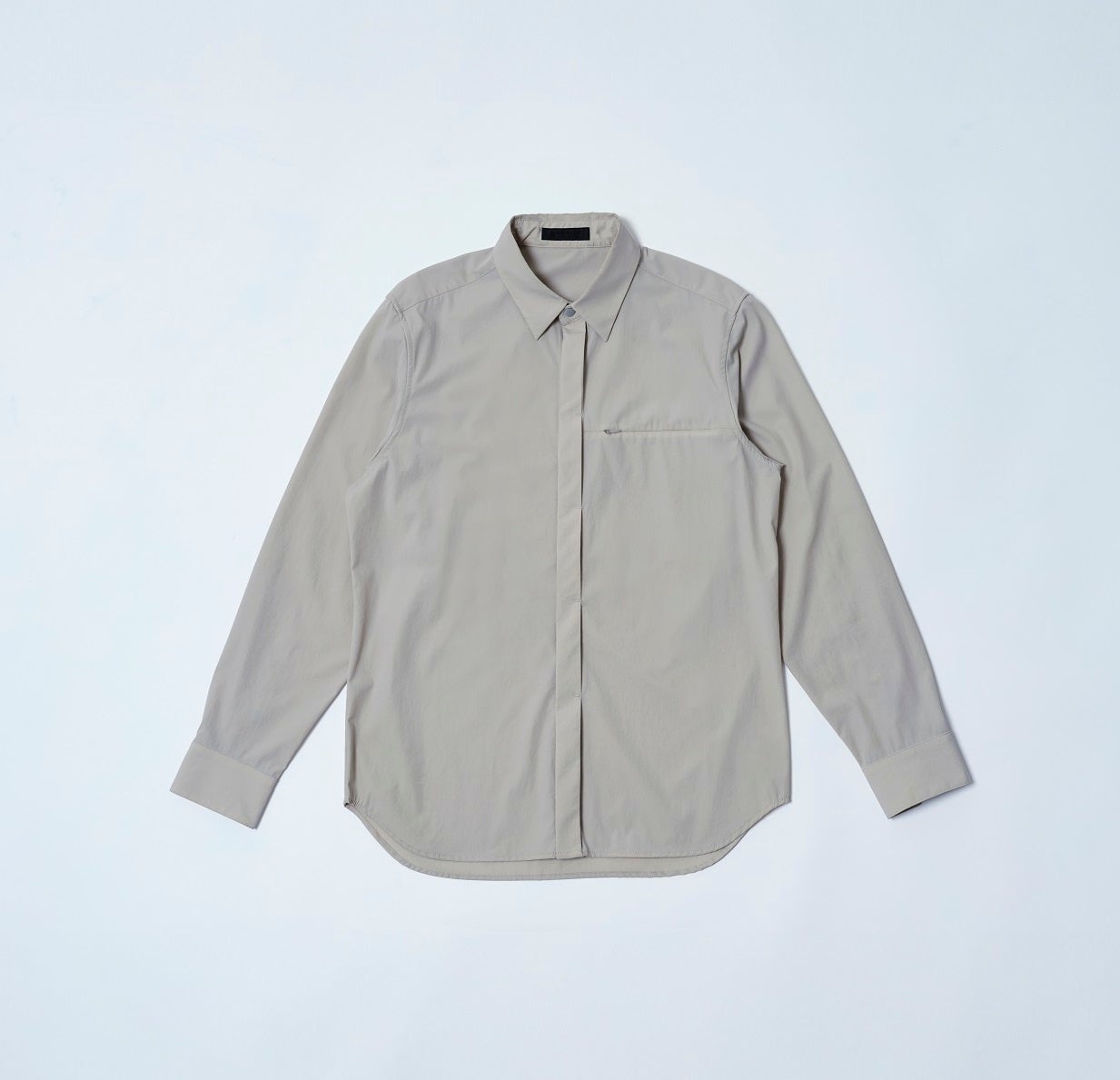 高品質なナイロン2wayストレッチ素材を使用しており、着用時のストレスを最小限に抑えます。伸縮性があり、快適なフィット感が特長です。スナップボタン仕様により、着脱が簡単で便利です。また、切り替えを利用したシームポケットは、小物や必需品を収納するのに最適です。これにより、シャツを着たままでも荷物を持ち歩けます。さらに、この長袖シャツはアウターとしても使えるレギュラーフィットで、他のアイテムとのレイヤードスタイリングに適しています。カジュアルな日常からアクティブなシーンまで、多彩なシーンで活躍します。