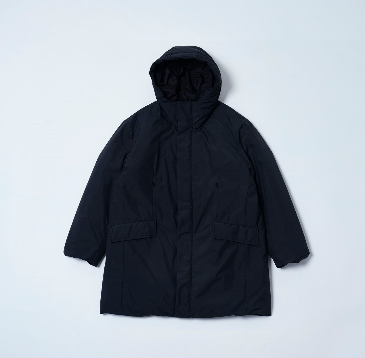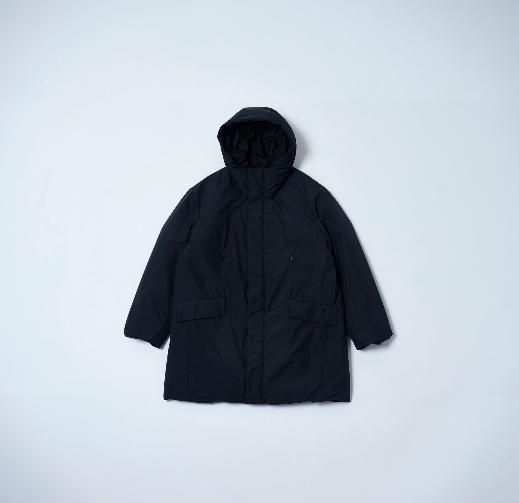 リサイクルナイロン素材に防水・透湿性の高いポリウレタンシートを組み合わせ、優れた防水性があります。軽量で保温性の高い新素材ダウン TX-DOWN™を使用し、寒い季節でも快適に着用できます。8つのポケットが大容量の収納をサポートし、Aラインのシルエットはリラックス感を演出。アウトドアや日常のスタイリングに最適です。
