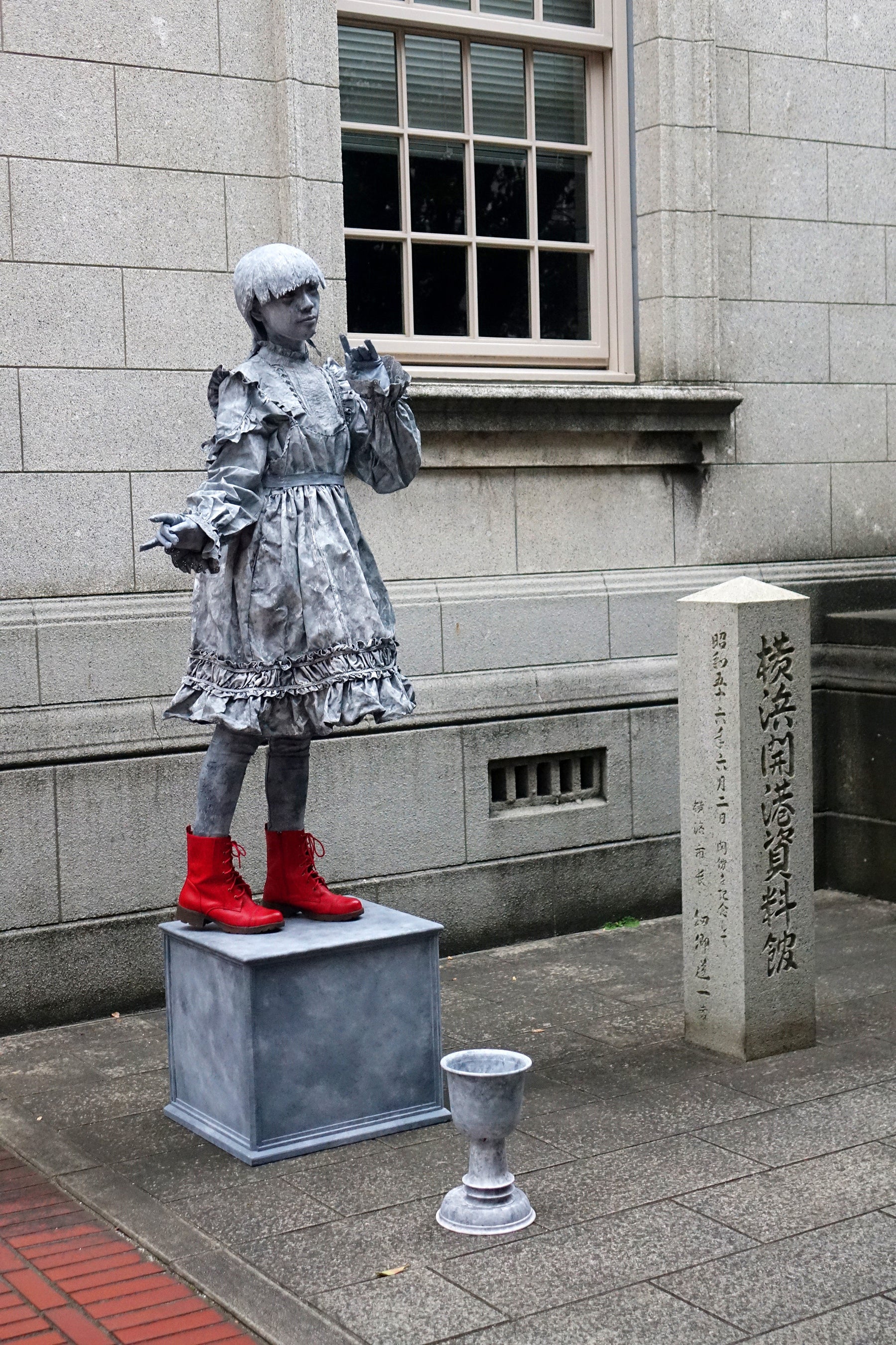 自ら「モノ」になりきるスタチュー・パフォーマンスは、街並みに調和してその魅力をさらに高めることができるのが特徴であり、街と博物館とパフォーマー、三者のコラボレーションが期待できます。横浜ユーラシア文化館は、このような特徴に注目し、博物館を中心としたスタチュー・パフォーマンスのイベントを開催しています!