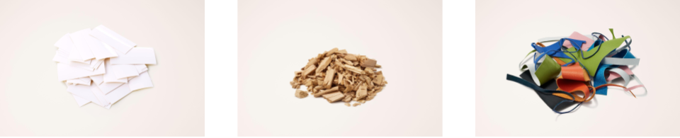 製品製造の際、材料から必要な部分を取ったあとに残る「端材」。本来は廃棄されてしまう素材ですが、視点を変えると、使い方から自由に考えることができる、アイデアの種となるアイテムでもあります。そんな発想から「端材シリーズ」はうまれました。