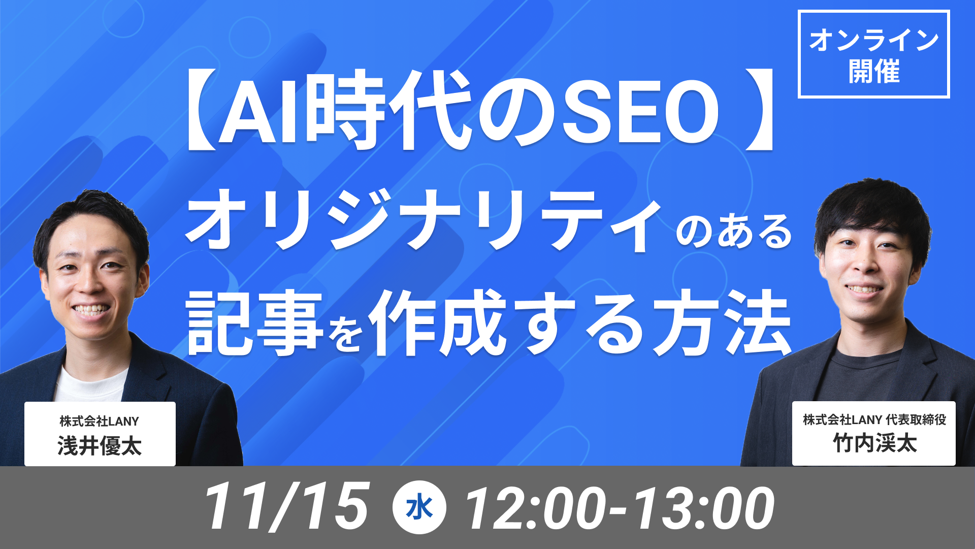 【無料ウェビナー】AI時代のSEO – オリジナリティのある記事を作成する方法を解説するウェビナーを11/15(水)に開催