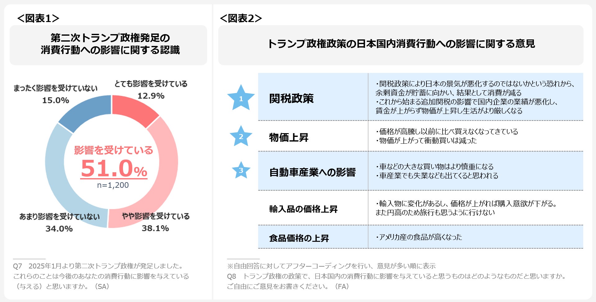 トランプ政権の影響:51.0%が消費行動に変化、物価上昇による買い控え