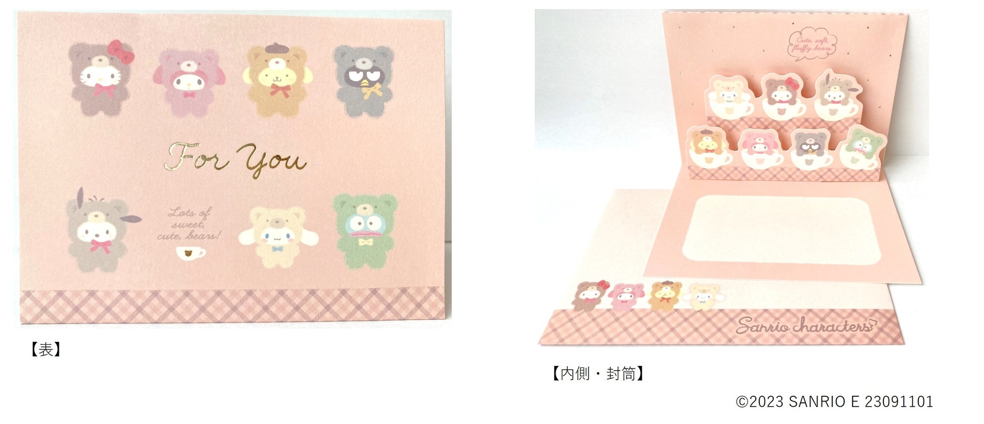 カードの内側にキャラクターがポップアップする仕掛けがついた、多目的に使用できるグリーティングカードです。封筒付き。