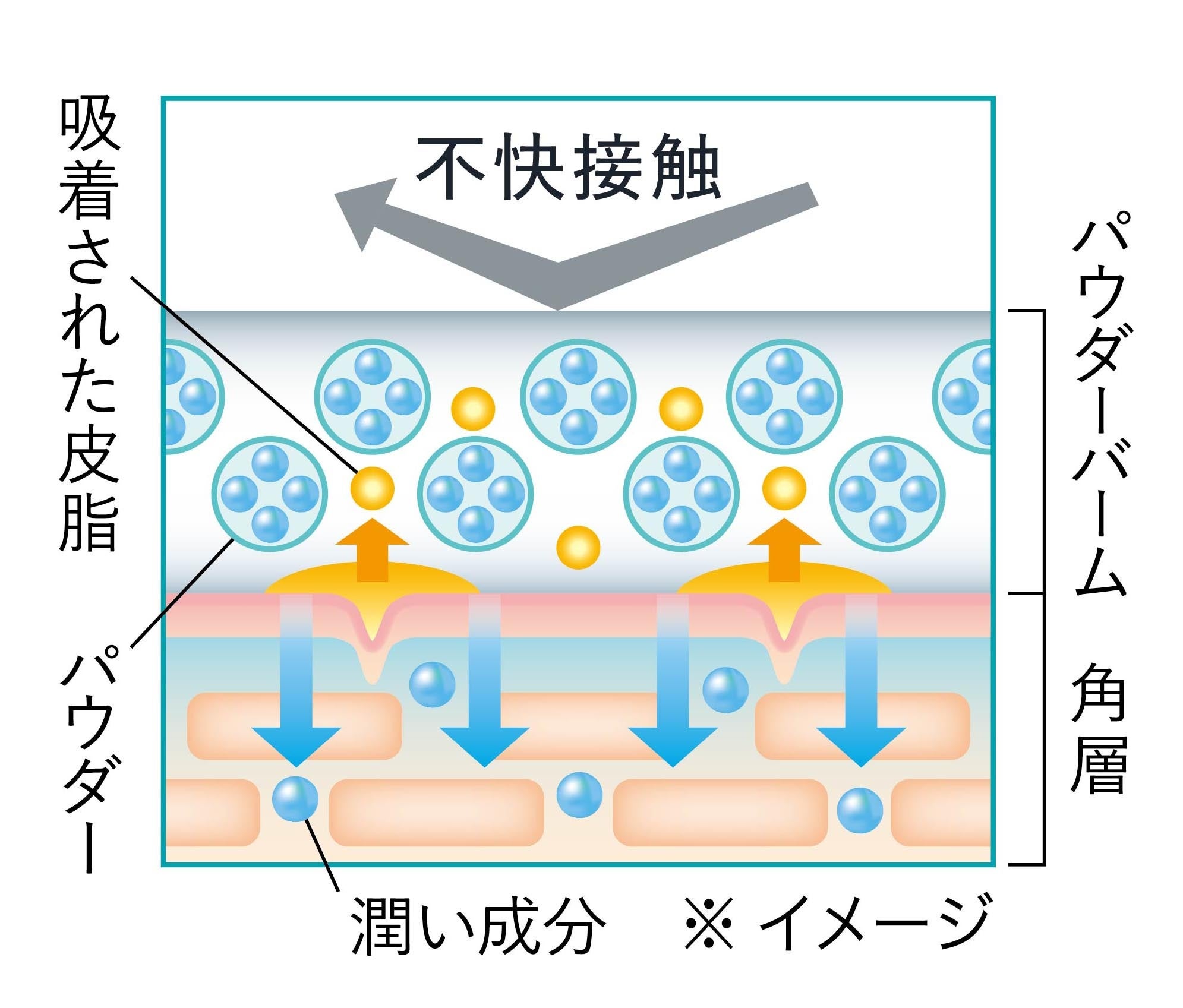 肌の皮脂や水分に反応して潤い成分(セラミド機能成分*1)を放出する、花王独自の「セラミドケア*2パウダリー処方」により、肌表面の汗や余分な皮脂などを吸着しながら、肌(角層)には潤いを補給することが可能となりました。