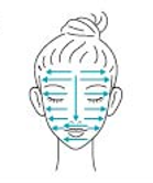 2.顔の中心から外に向かってなじませます。最後に指のはらで肌表面をなでるようになじませます。