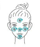 1.適量(長さ約2cm)を、顔の5か所に。指のはらで、バームを軽く円を描くように広げる。