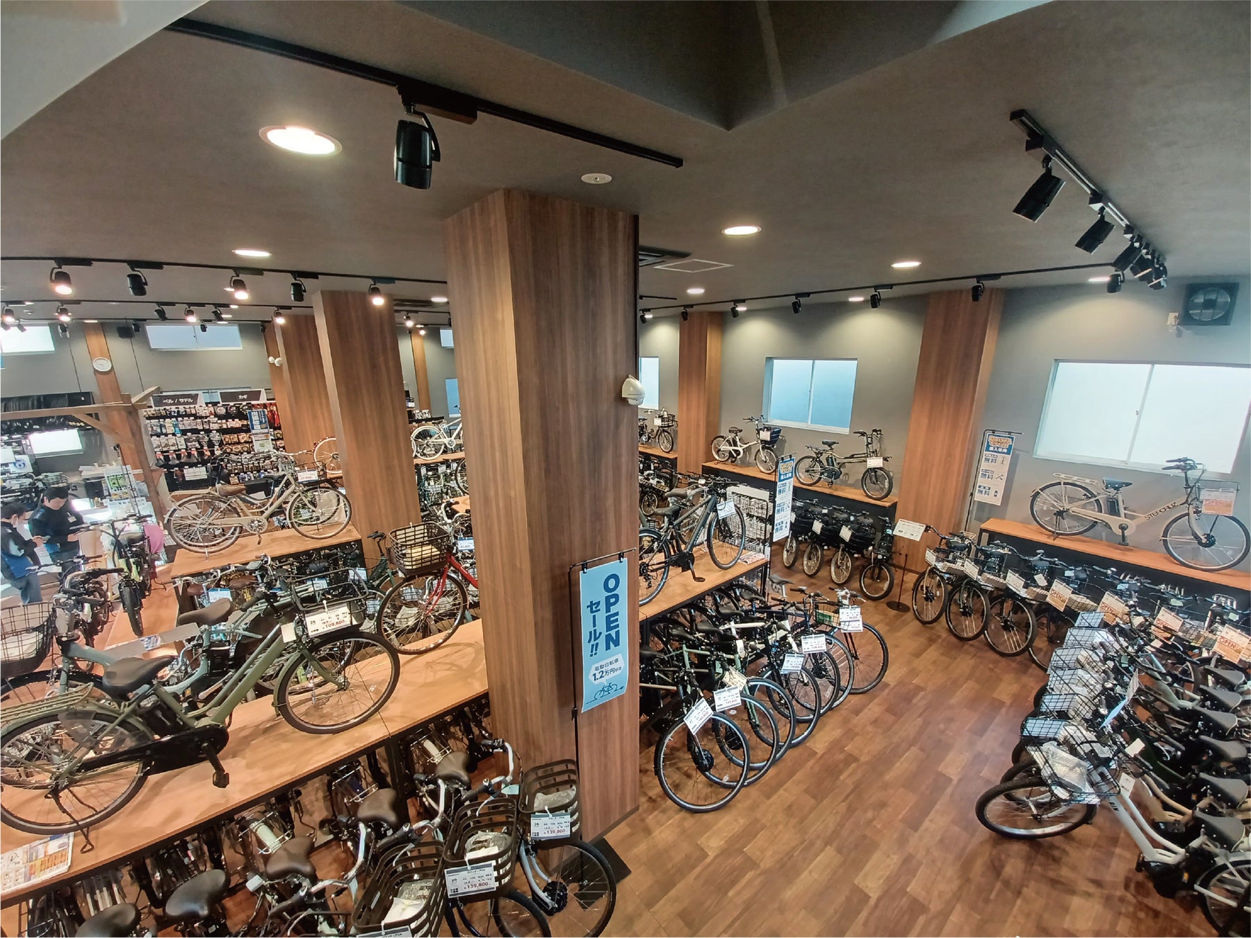 ダイワサイクル座間店は2階建ての店舗で、1階は電動アシスト自転車、シティサイクル、2階にはシティサイクル、スポーツサイクル、ミニベロ・折畳車、子供車と幅広い年齢の方に向けた自転車をご用意いたしております。
